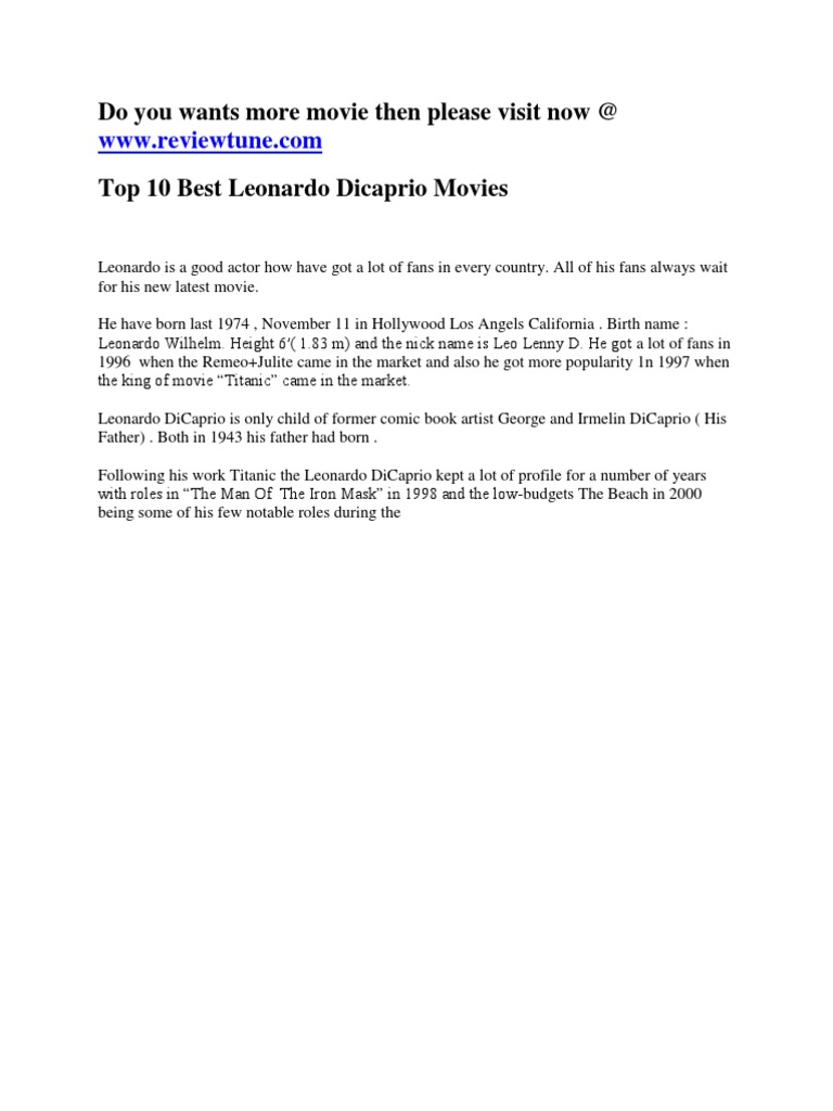 Top 10 Leonardo Dicaprio : So here are the top ten best leonardo dicaprio movies ever made.